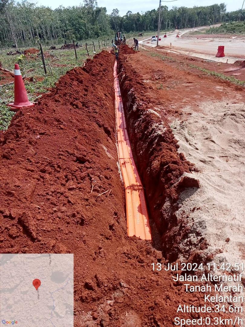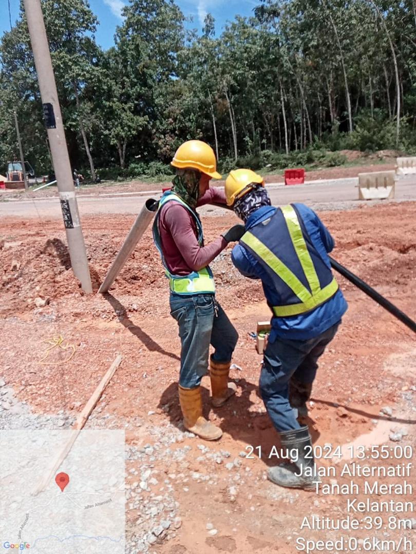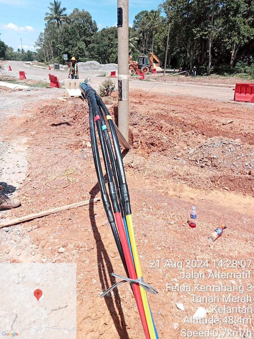 TNB LV relocation works that include underground power cable and overhead transmission for new roads connecting Jalan Lubok Kiat – Kubang Kuau (D181) to Jalan Felda Kemahang 3 (FT1739).